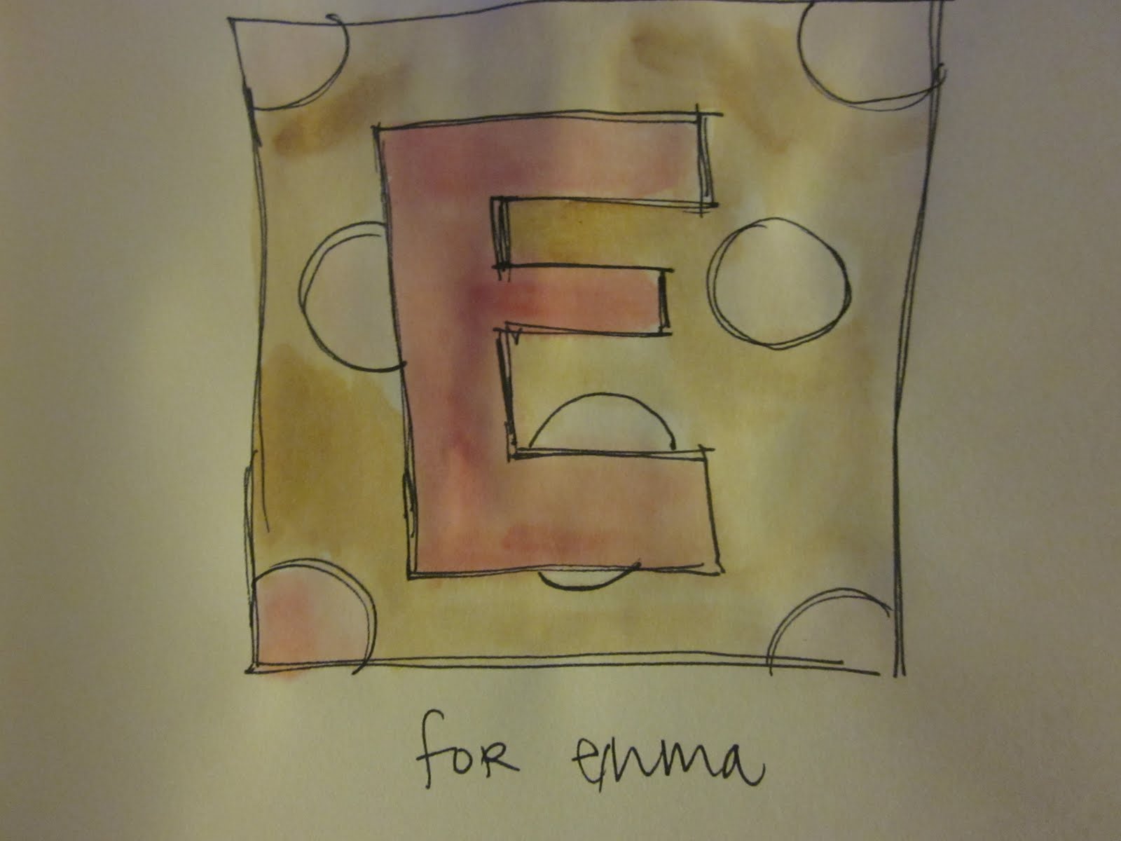 My cousin F had her 3rd baby a month after babykins was born. Sweet Emma is such a doll and recently moved to Virginia (along with the rest of the family naturally). Anyhow… F wanted me to paint a nursery letter for Emma.